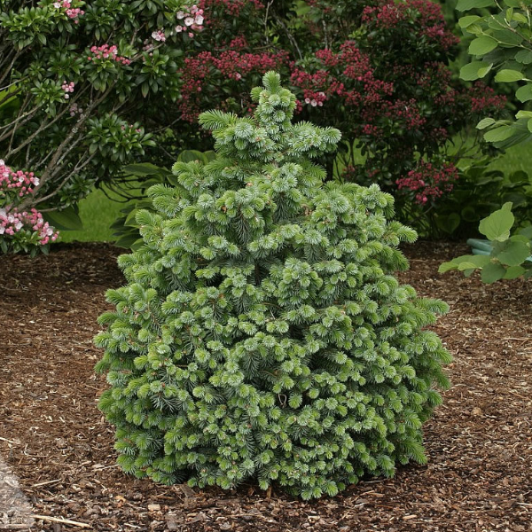 Ель ситхинская 'Тенас' Picea sitchensis 'Tenas' - медленно растущее хвойное дерево, в молодости округлое, с возрастом приобретающее коническую форму, с серебристо-зеленой хвоей,небольшое, компактное, Крона плотная.Ветроустойчива. Место солнечное. Почва влажная, дренированная. Морозостойкость до -23ºС.