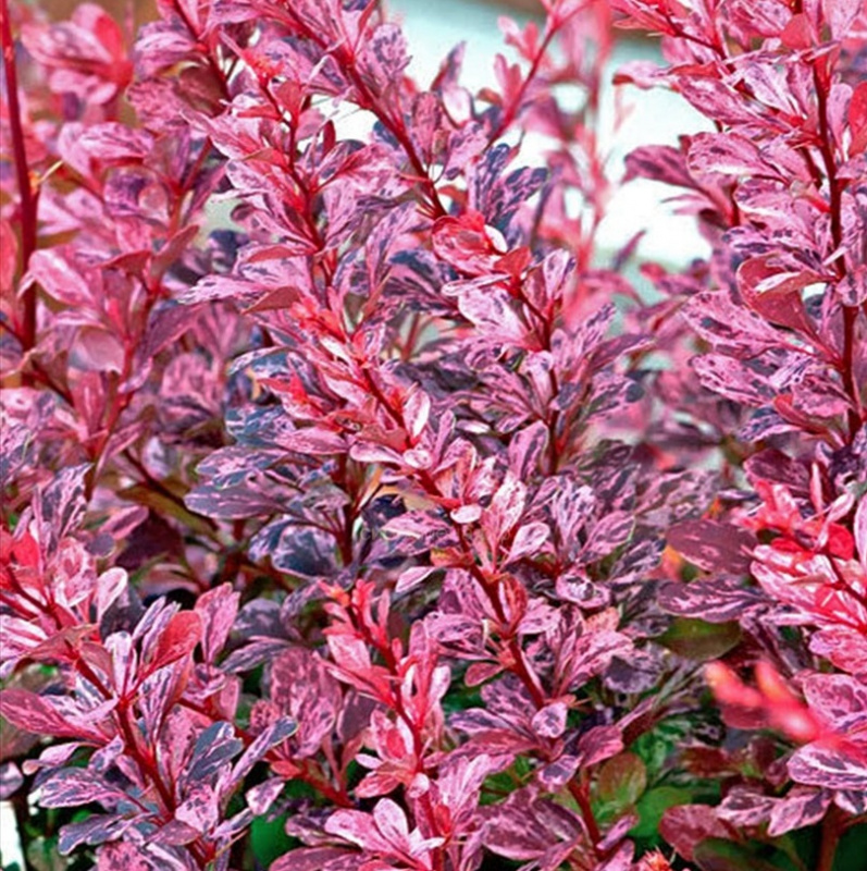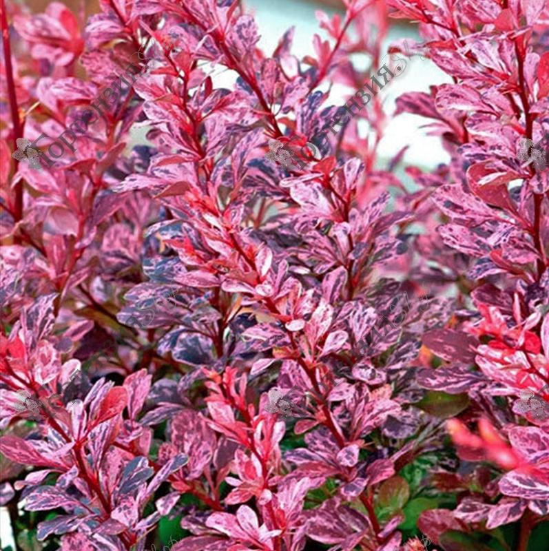 Барбарис тунберга Pink Bird достигает высоты около 1,5 м. У него шаровидная, кустистая форма. Компактный куст впечатляет темно-красными листьями, похожими на цвет насыщенного вина. Главная особенность этого сорта - его декоративная листва. Начиная со второй половины лета листья становятся крапчатыми, испещренными белыми или бледно-розовыми пятнами. Растение в этот момент напоминает птицу с пестрым оперением.  Цветы желтовато-оранжевые. Сорт отлично подойдет для создания топиарных форм, украшения каменистых горок, бордюров, в качестве солитеров, парковых зон.