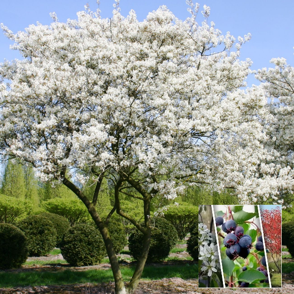 Цветки звездчатые, собраны в многочисленные белые соцветия. Цветение - апрель-май. Плоды съедобны, используются в кулинарии как в свежем, так и в консервированном виде. Зимостойка, выносит полутень, но на свету цветёт обильнее.