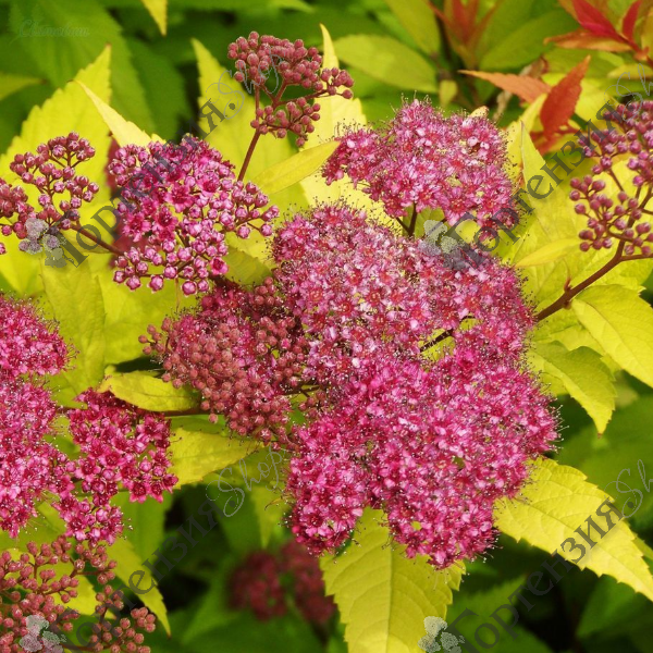 Спирея японская Голдфлейм (Spiraea japonica Goldflame) - низкорослый кустарник высотой 0,6-0,8 м и шириной 0,7-1 м. Крона компактная, густая. Листья в течение сезона меняют цветовую гамму от оранжево-красной до бронзово-золотистой, от жёлто-зелёной до ярко-жёлтой. Мелкие цветки, собранные в щитковидные пышные соцветия, ярко-розовые, имеют лёгкий аромат. Используется в групповых и одиночных посадках, для создания садовых композиций.