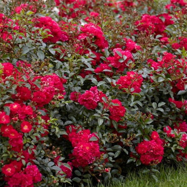 Роза миниатюрная 'Fairy Queen', Rosa 'Fairy Queen' - мощная, компактная почвопокровная роза, высотой до 60 см, с темно-зеленой листвой. Цветки небольшие, очень махровые, округлые, малиново-красные цветы с легким ароматом, повторное цветение с лета до осени.