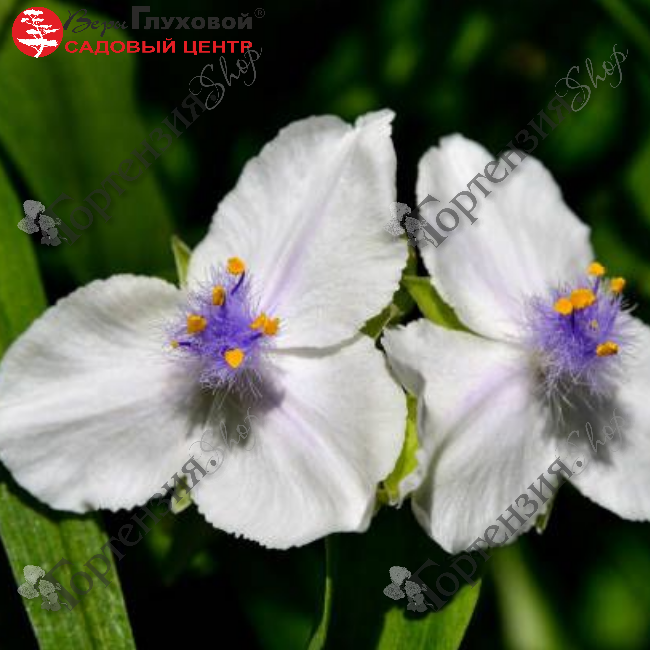 Традесканция андерсона 'Литтл Вайт Долл'- многолетнее растение. Высота 40 см, листья глянцевые, ланцетные ,зеленые. Цветки белые с сиреневыми тычинками, трех лепестковые, цветет с июля по август. Морозостойкость -34С. Почвы предпочитает плодородные, дренированные. Используется в миксбордерах, натуральных садах, бордюрах.