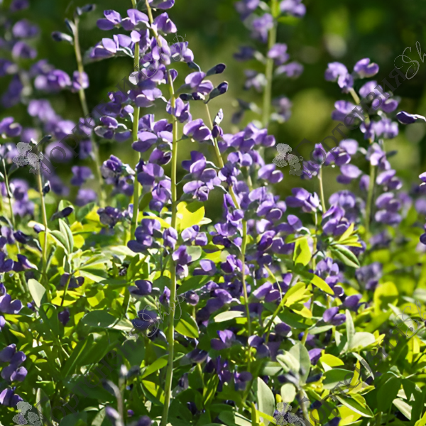 Многолетнее цветущее растение высотой и шириной до 1м. Листья сложные, трехлопастные разделенные, плотные, сине зеленые. Цветы 2 см сине-фиолетовые в кистевидных соцветиях до 30 см. Почвы предпочитает плодородные место посадки солнечное. Морозостойкость до -34С. Используется в рокарии, альпинарии, каменистых садах, миксбордерах.